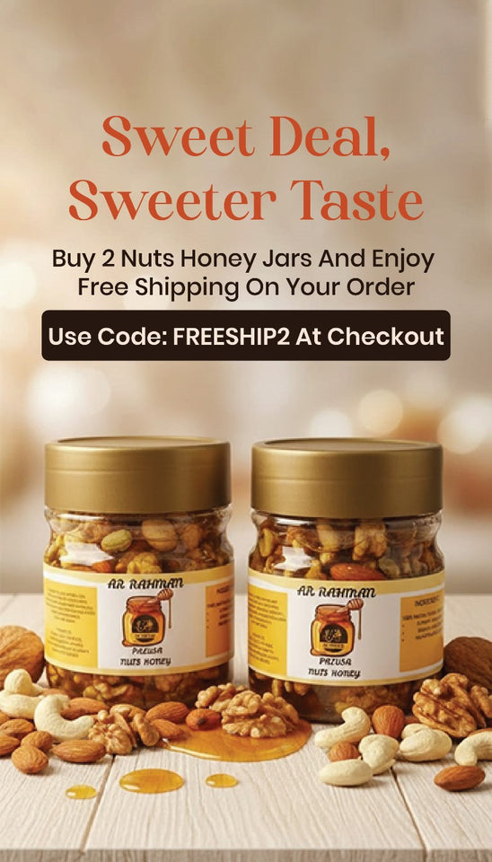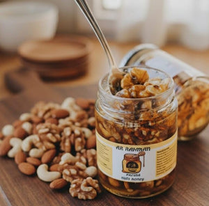 AR Rahman Naturals Nuts Honey is a delicious mix of pure honey and crunchy nuts. A tasty, healthy, and energy-boosting choice for your snacks and desserts. It is especially good for kids’ growth and helps in reducing internal weakness, making it a natural source of strength for the whole family.